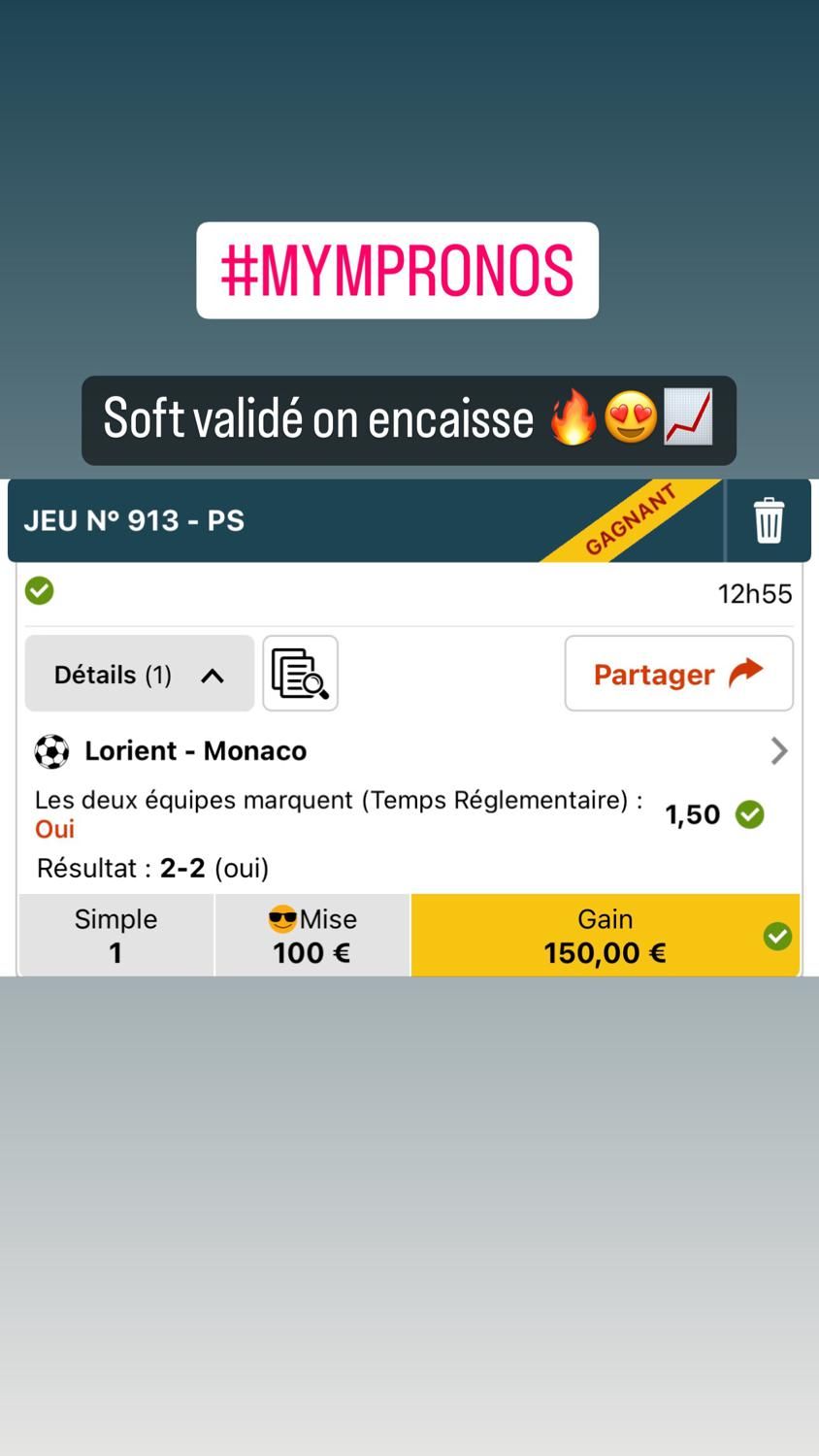 🥇Bénéficiez de mes pronostics chaque jours🔔 1 #pronostic par jour minimum 📈⚽️🎾🏀 🔽 TICKET VIP DISPOS CI-DESSOUS ⬇️ Jouer comporte des risques : dépendance, isolement… Appelez le 09 74 75 13 13 (appel non surtaxé) . #mym #pronos #bellecote